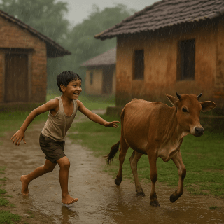 I still remember this one time—it was raining hard, and for some reason, I was chasing a cow. I slipped, landed flat on the ground, completely soaked in mud. And of course, all the kids burst into laughter, teasing me for days after. But even that felt like joy. It was magic. It was all so alive.